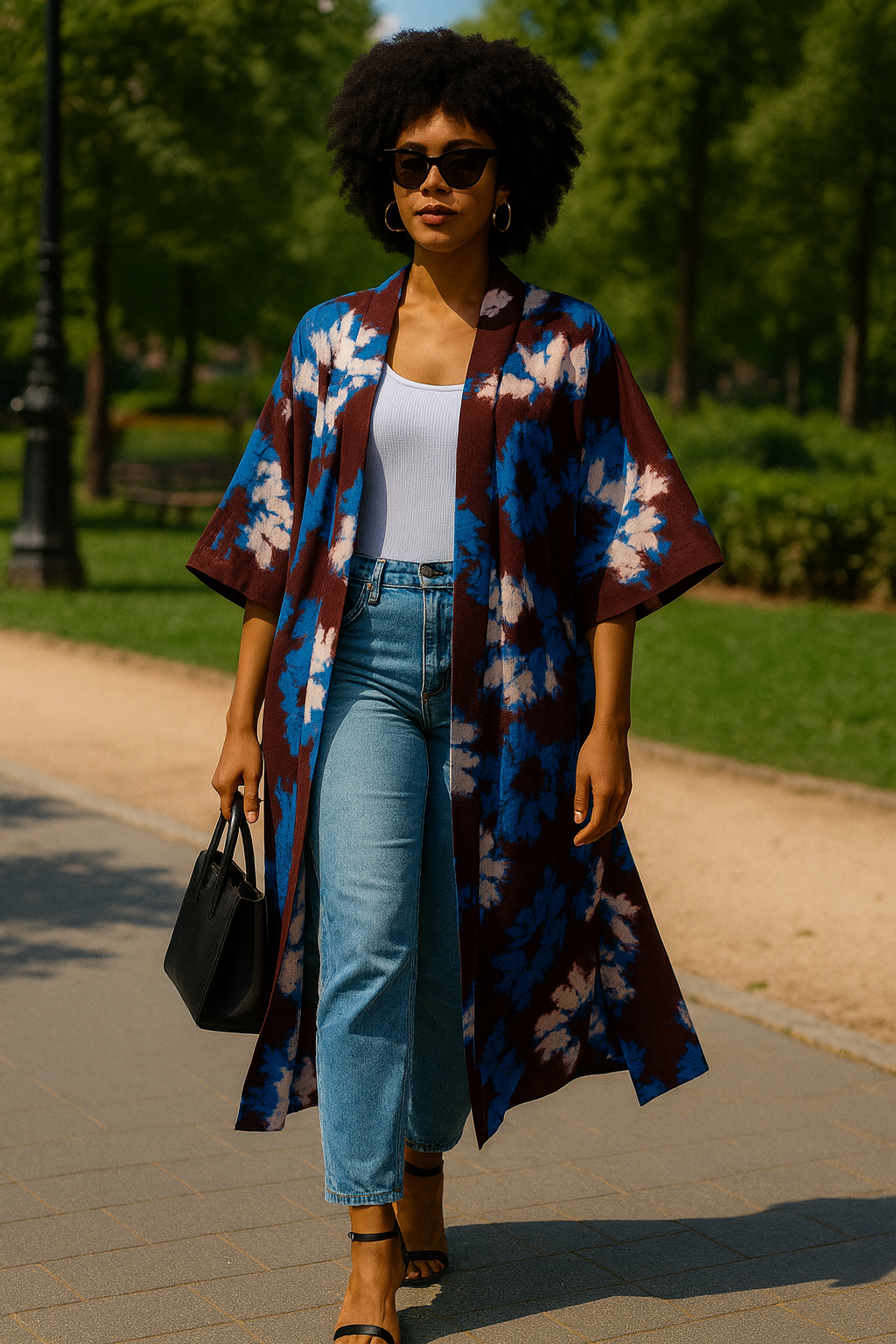 Le kim’s est un kimono que vous pouvez porter en robe cache coeur pour avoir une touche d’élégance, ou ouvert ce qui lui donne un effet oversize et ajouter du style à une tenue.