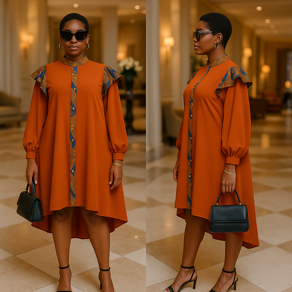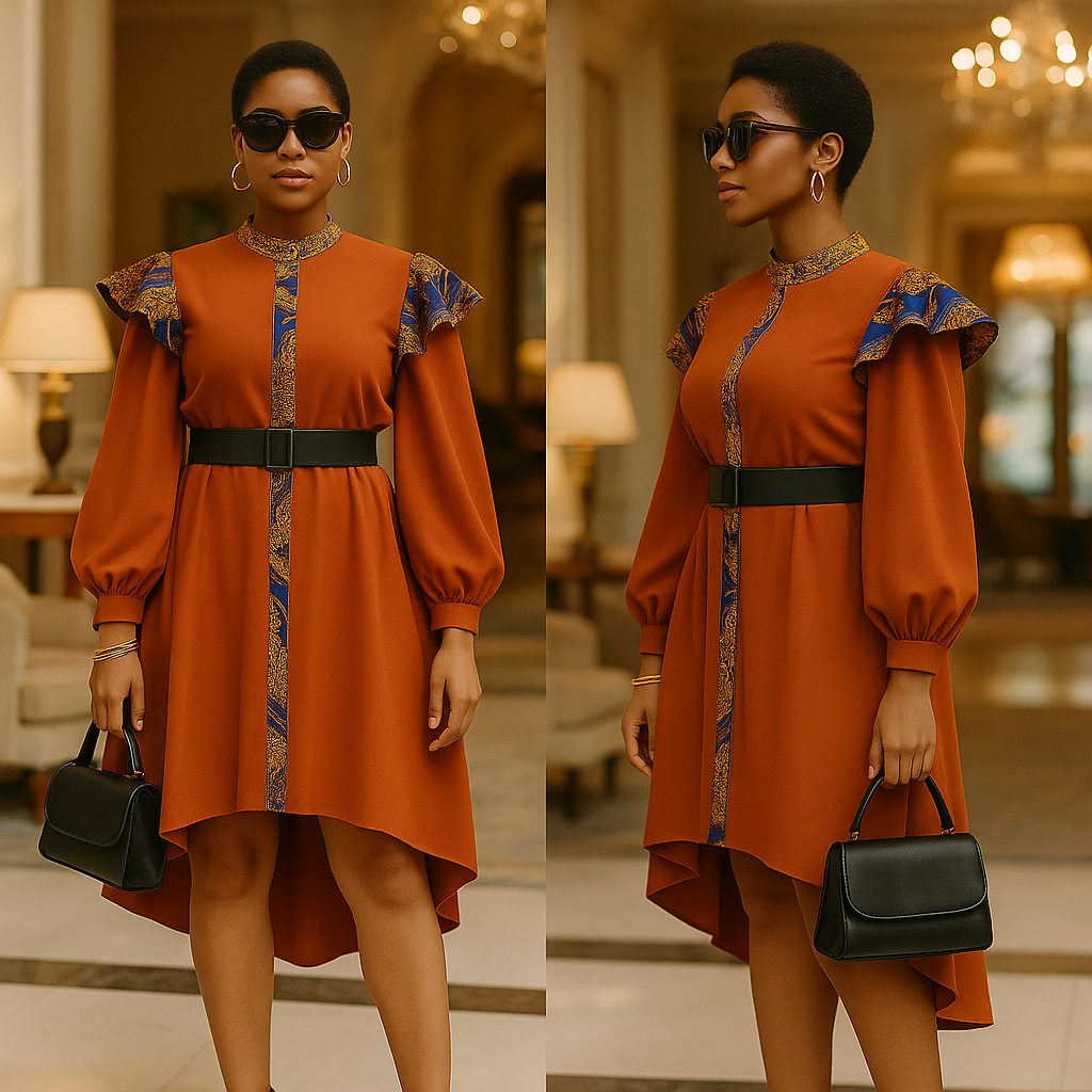 La robe est légèrement plus longue au dos, la robe est large pour un effet glam porter une ceinture à la taille